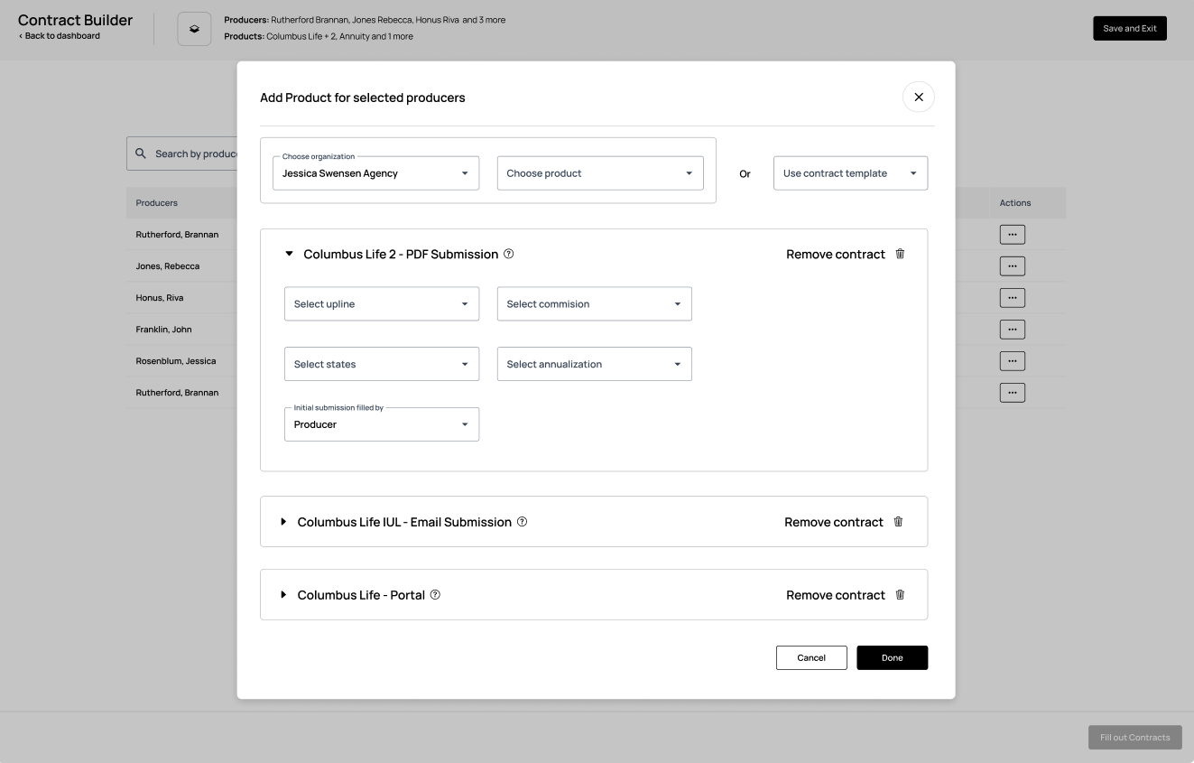 As the platform scaled to support enterprise and strategic partners, internal admins needed a faster and more flexible way to submit contracts for multiple producers across different carriers. Existing workflows were rigid, sequential, and often blocked progress when some contracts required producer or agency review while others did not.