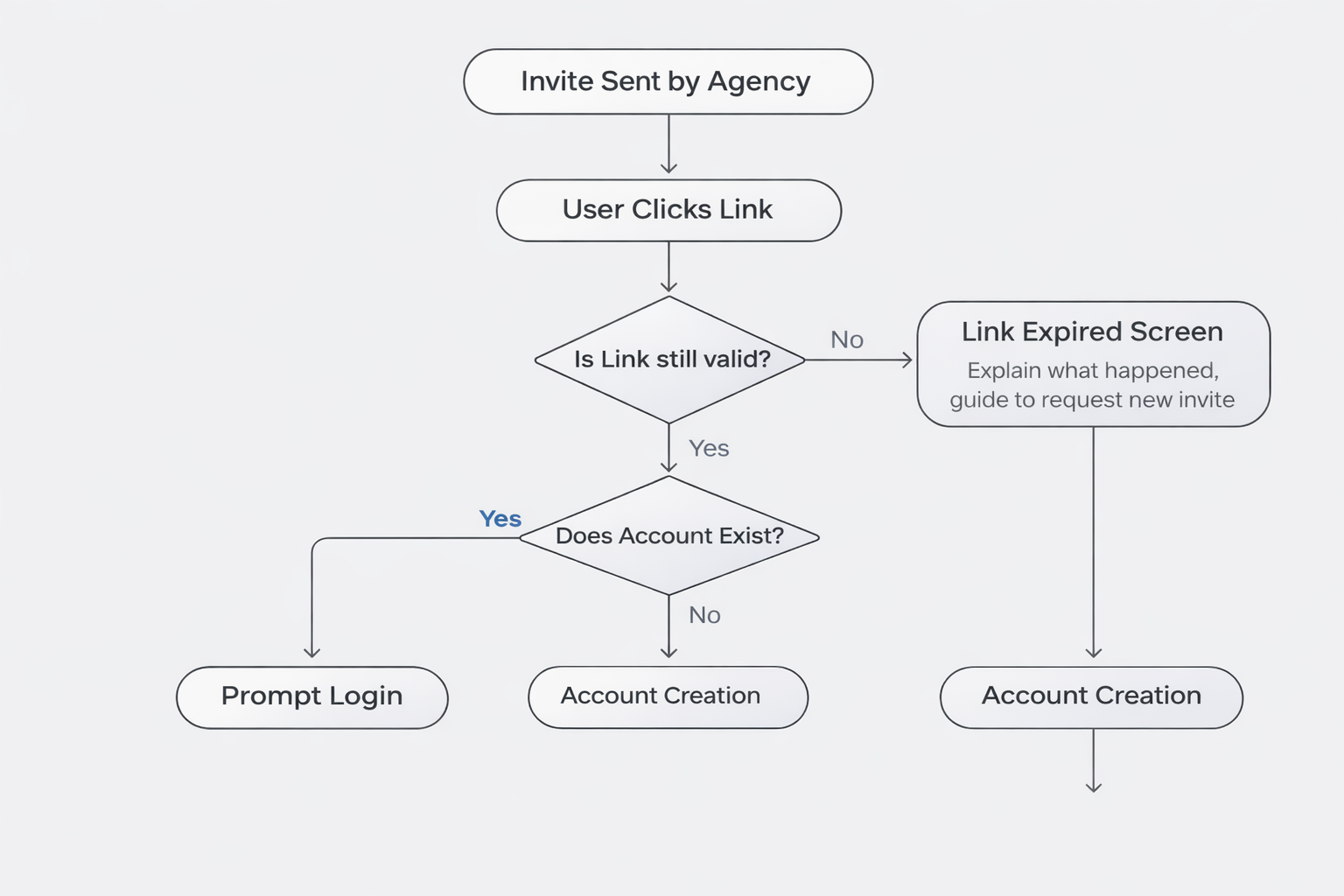 This created a complex onboarding challenge: how to invite producers securely, guide them through account setup or login, and ensure they land in the correct workflow — without blocking progress or confusing users.
